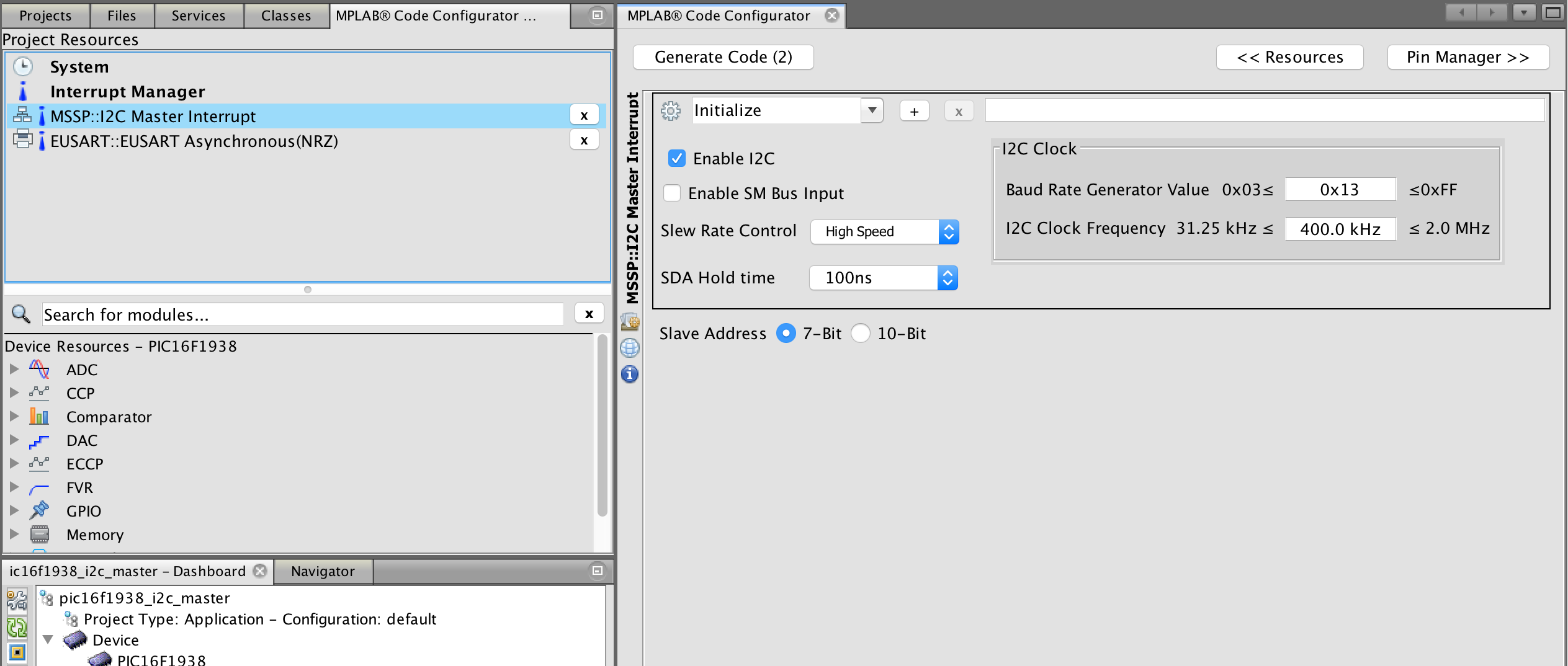I2C Master MCC MSSP
