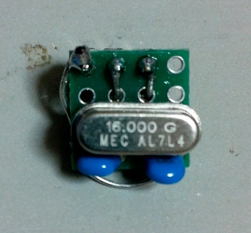 今後、スケッチを焼いたATmegaをブレッドボード上で動かすことがあるかも知れないので、16MHzのクリスタルをモジュール化した。